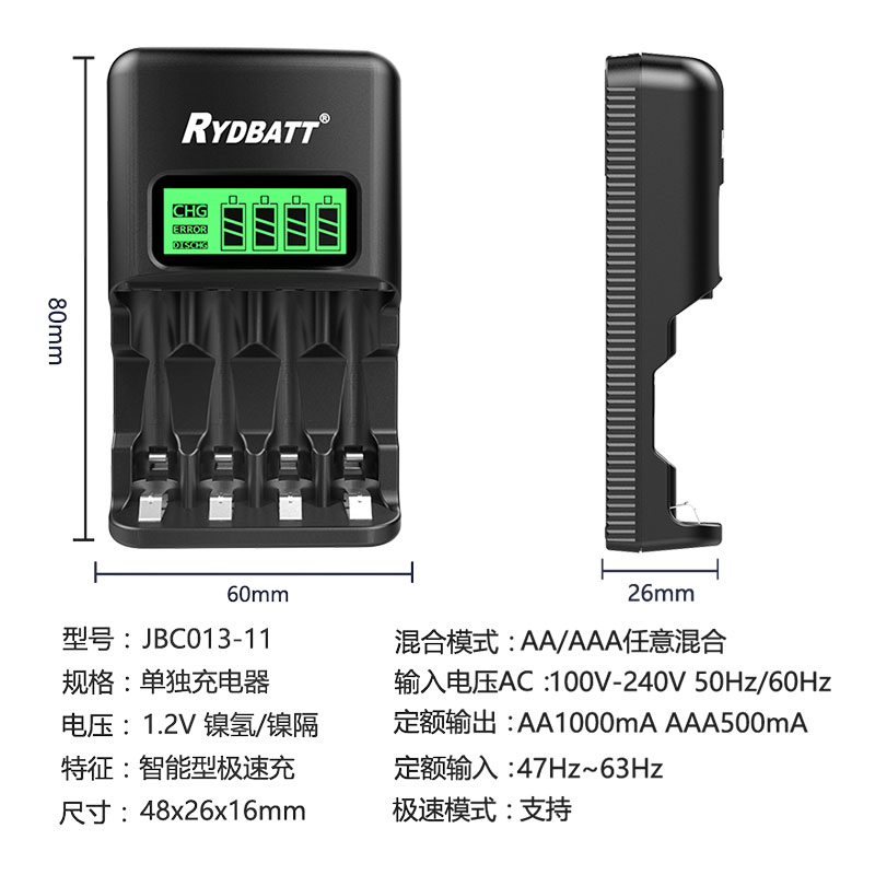 输出规格:DC Output: AA: 1.2V 1000mA*2 500mA*4; AAA: 1.2V 500mA*2 250mA*4;