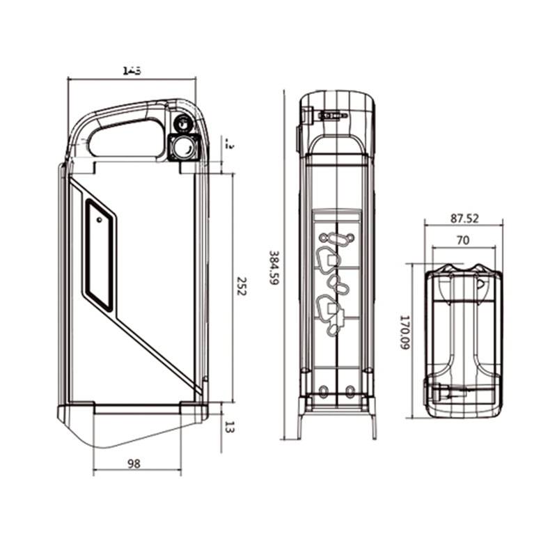 产品描述:这是一款大容量提拉式48V电动自行车用的18650动力锂电池组,常规动力款,内置抗震防爆结构,支架最多可支持78支18650锂电芯的组装。充放同口,支持15A持续放电。