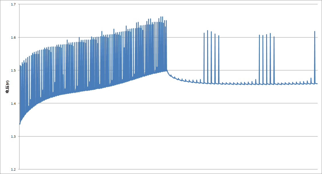 (注:这图很早期只有日本掌握这种技术时衍生的,由于当时的电池技术和充电器还没现在先进,所以需要一个定时的持续的负压监测跟持续的充电过程,最终产生了图中的这种电压曲线走势出现明显的下降)