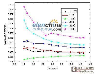 图4 电压检测电路扩大倍数不同温度对照图