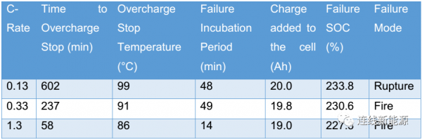 (1)影响过充试验最终结果的因素很多,如散热条件、充电比、电池化学系统等都会影响试验结果。具体问题要在测试和分析中分析,而不是泛化。