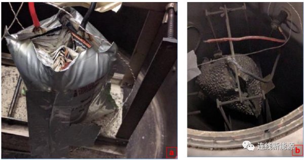 图4.(a)电池过充0.13C后照片;(b)电池过充0.33C和1.3c的照片。