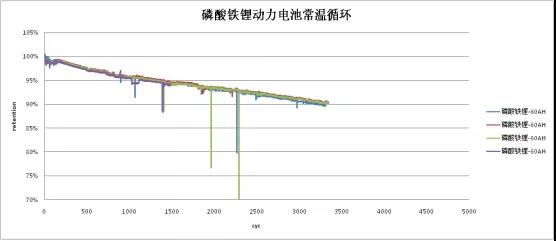 常温测试电池的循环寿命可以看出,磷酸铁锂电池的长寿命优势,目前做到3314个循环,容量保持率依然在90%,而达到80%的寿命终止可能要做到4000次左右。