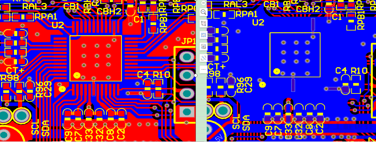 3,运放输入端及连接的匹配电阻到最终的采样电阻之间的走线,就尽可能减少过孔的数量(参见样例十)。